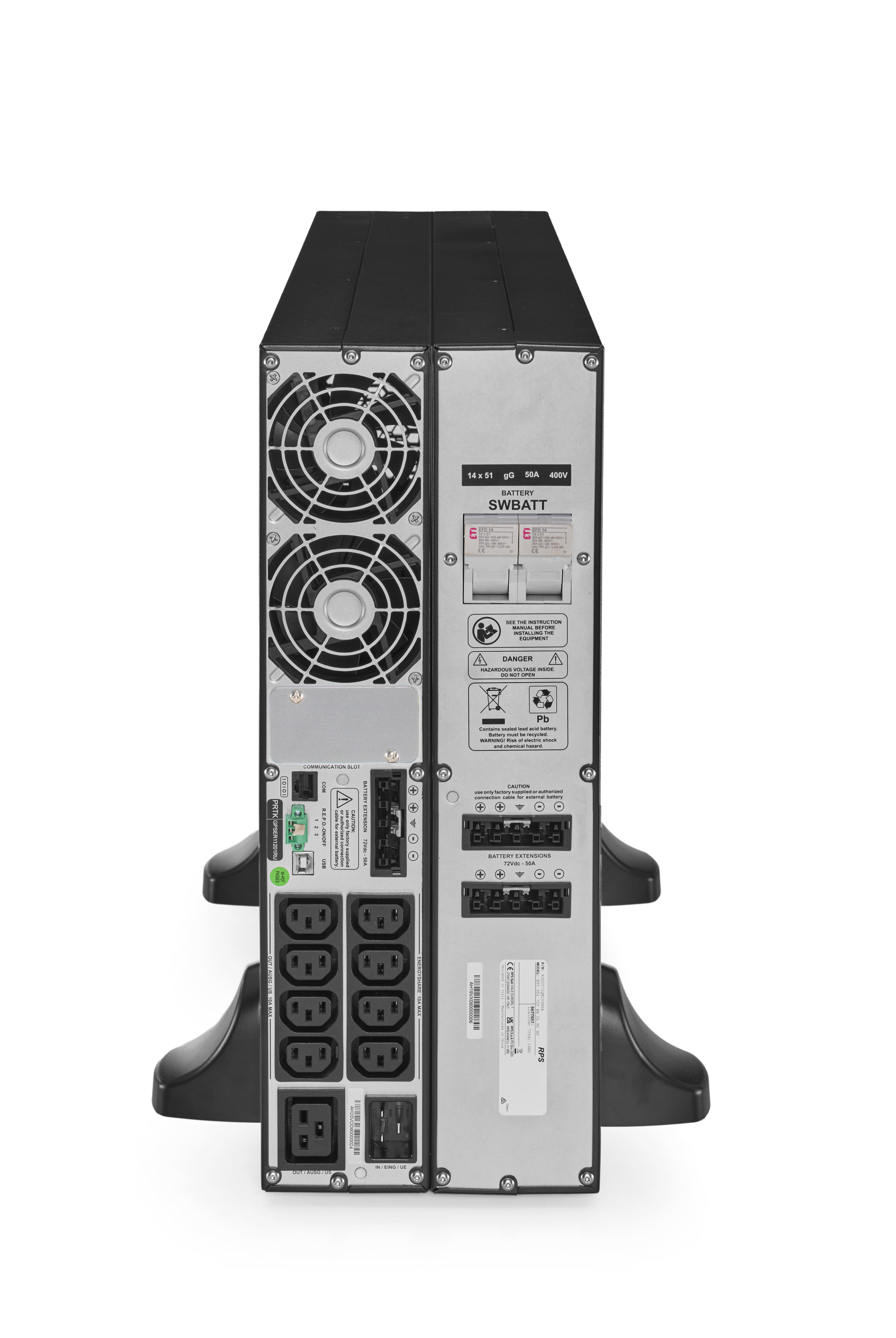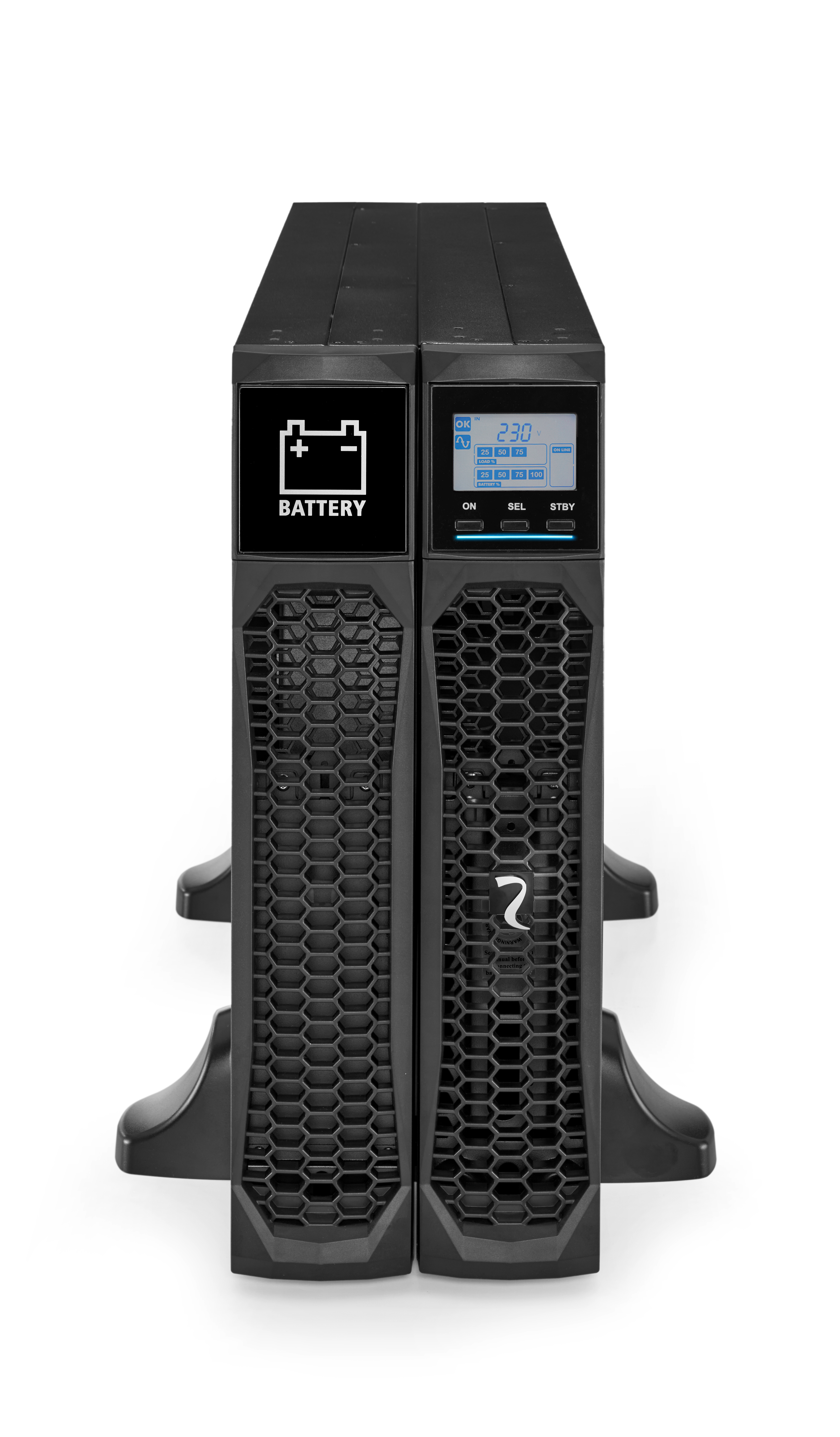 The Riello Sentinel Dual2 Battery Cabinet provides additional autonomy (runtime) when coupled with the SD2 UPS system. As with the Rack/Tower UPS, the battery box can be mounted in standard 19" cabinets and racks, or vertically, alongside the UPS.