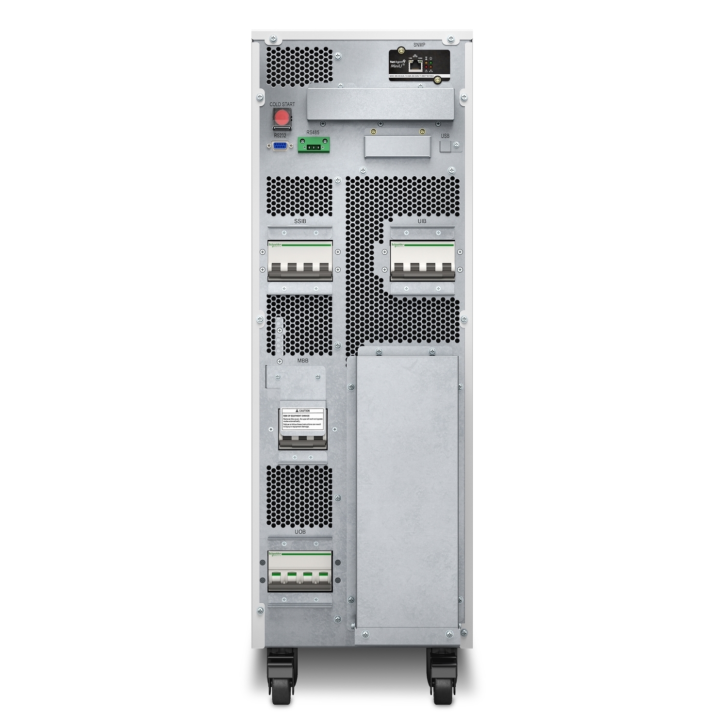 - Front-access servicing - Simplifies installation and UPS maintenance while minimizing space requirements.