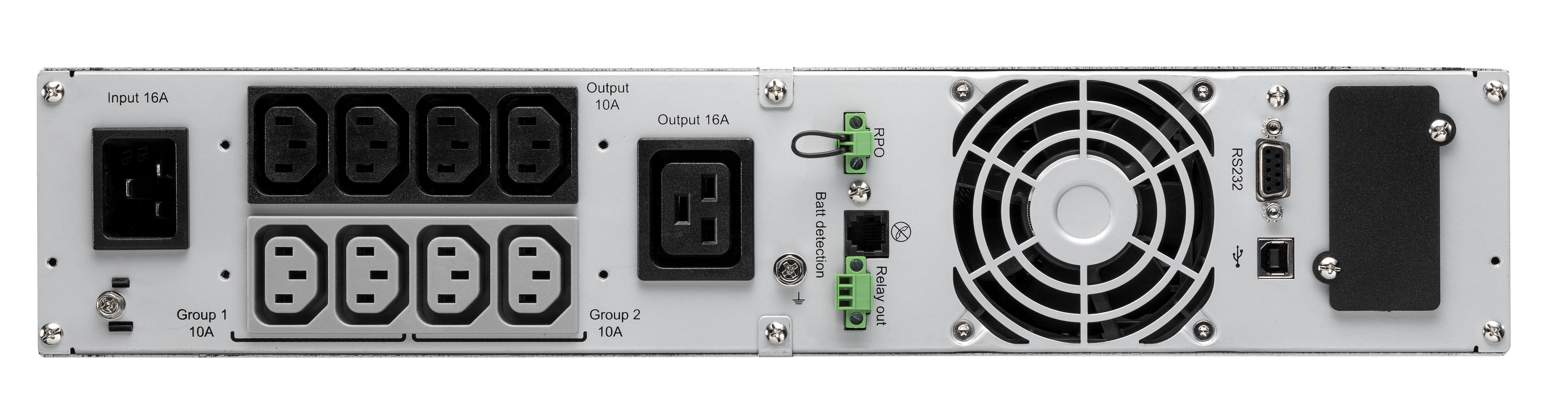 - Up to 3kVA of UPS power is packed into only 2U of rack space.